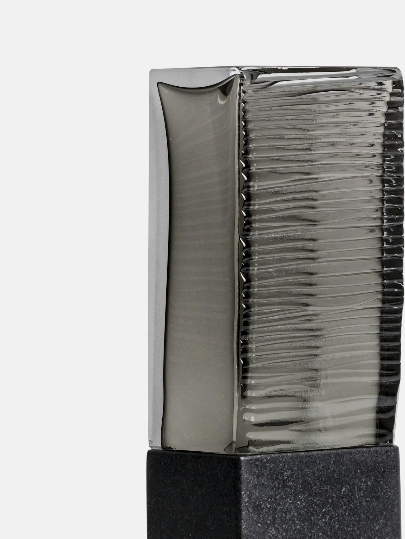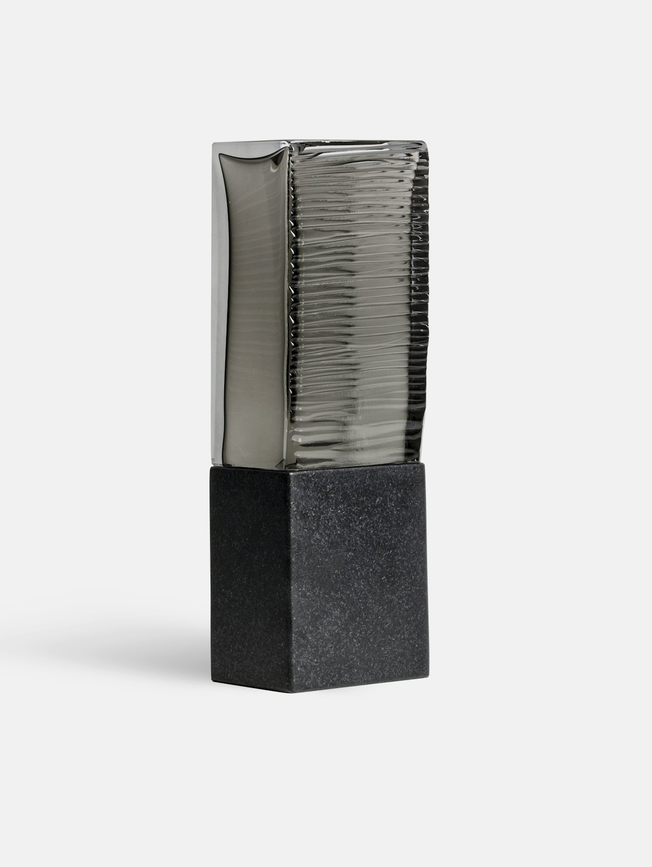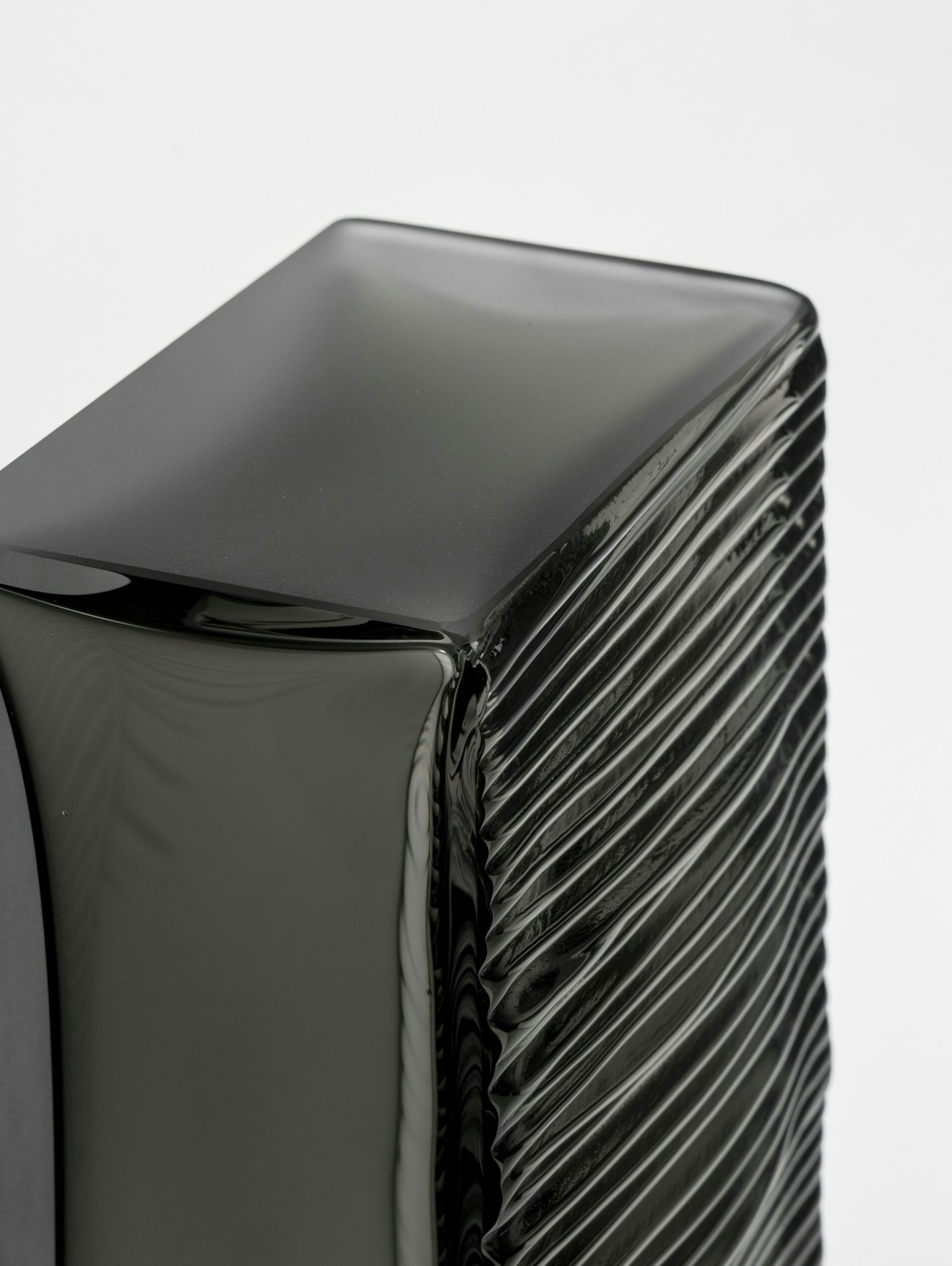 Lena Bergströms internationellt uppmärksammade serie Origami är munblåst på Kosta Glasbruk. Den svarta Origami vilar på en stensockel och är framtagen i fem unika, numrerade verk signerade av konstnären.